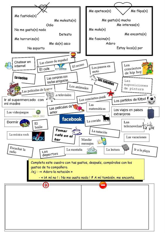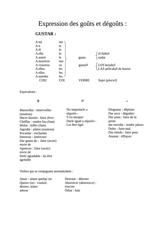2) de regarder les fiches de conjugaison pour comprendre comment conjuguer gustar et ses copains verbes de goûts (15mn)