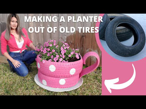 How to make a tea cup planter out of old tires // DIY ideas with scrap tires