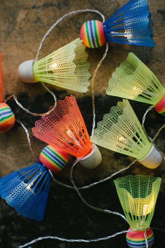 Guirlande lumineuse avec des volants de badminton : Découvrez ici comment utiliser des volants de badminton pour en faire une jolie guirlande lumineuse.